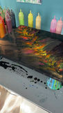 I play with a good variety of abstract fluid art concepts—swipes and cells, ring pours, straight pours, tilts, spins, whatever feels right for the colours in that given moment. The results are always fun and unexpected.